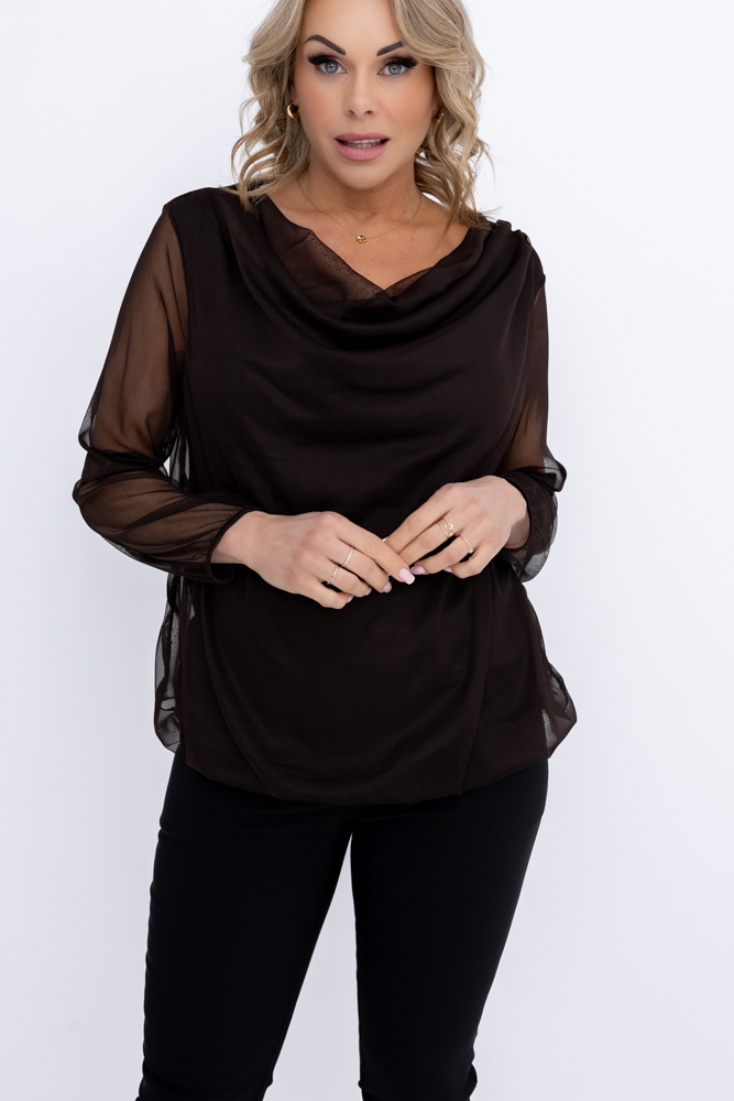 Coffee Blouse with flowing neckline