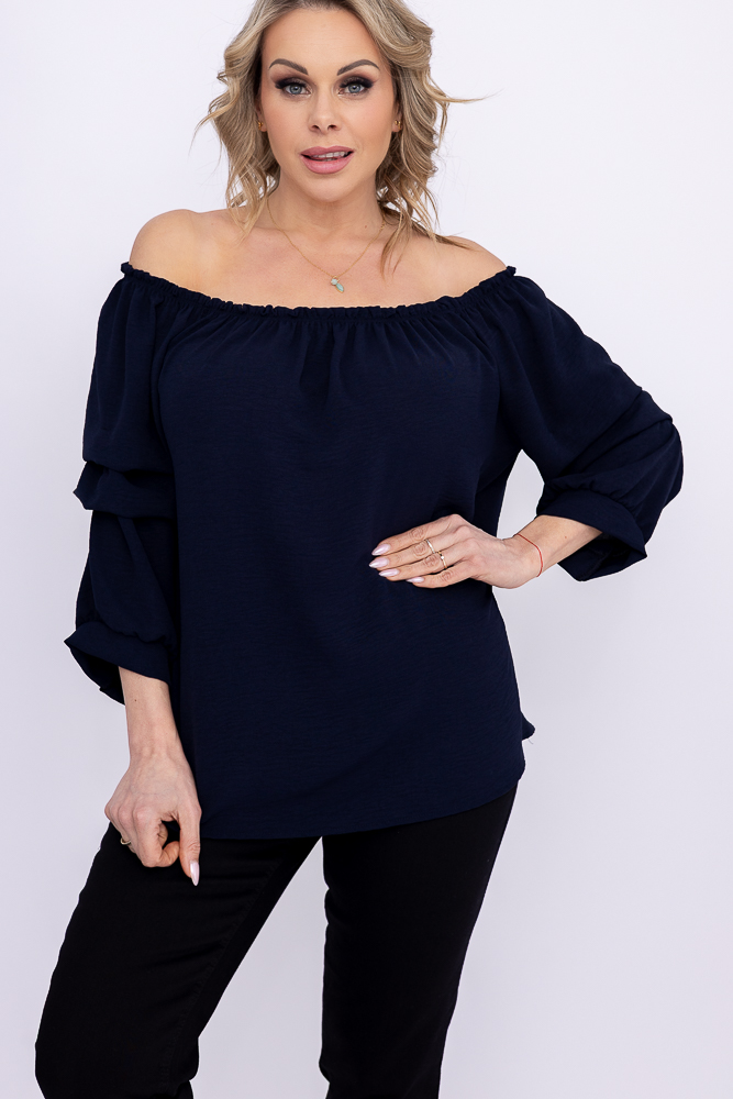 Granatowa Bluzka z marszczonymi rękawami LURIGO