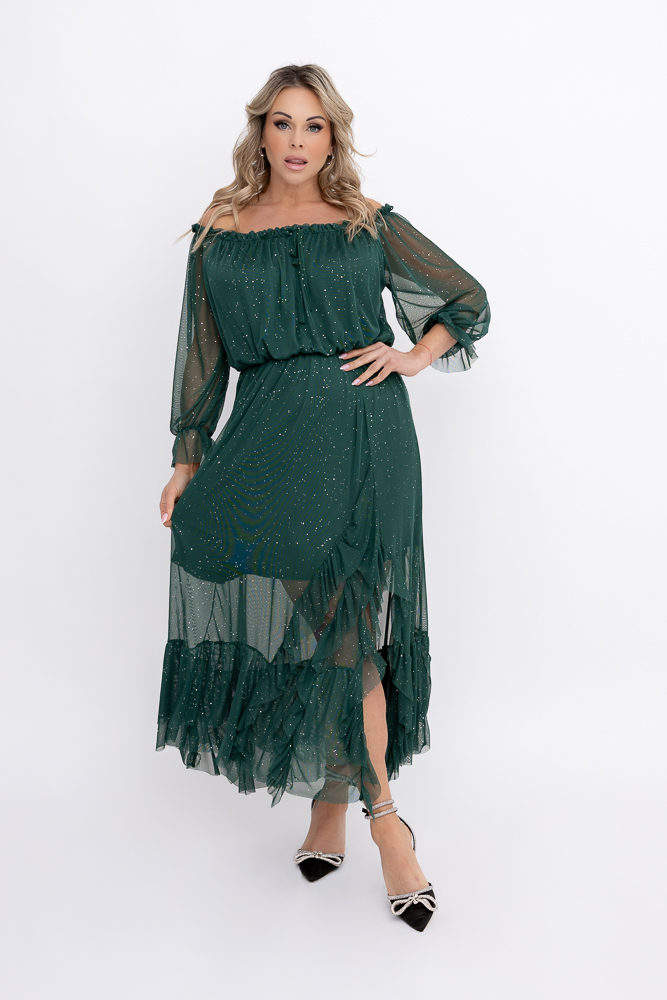 Butelkowozielona błyszcząca Sukienka siateczkowa Wzór 1