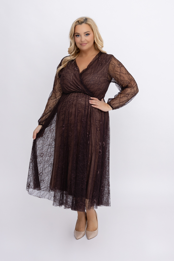 Chabrowa Sukienka szyfonowa z paskiem EGELI