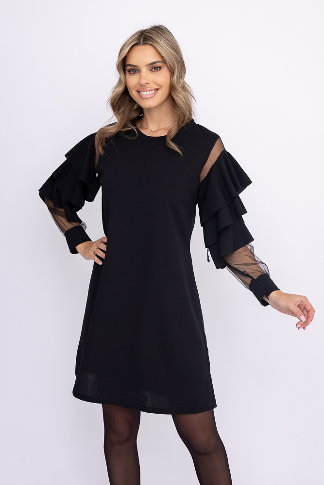 Czarna Sukienka z falbanami