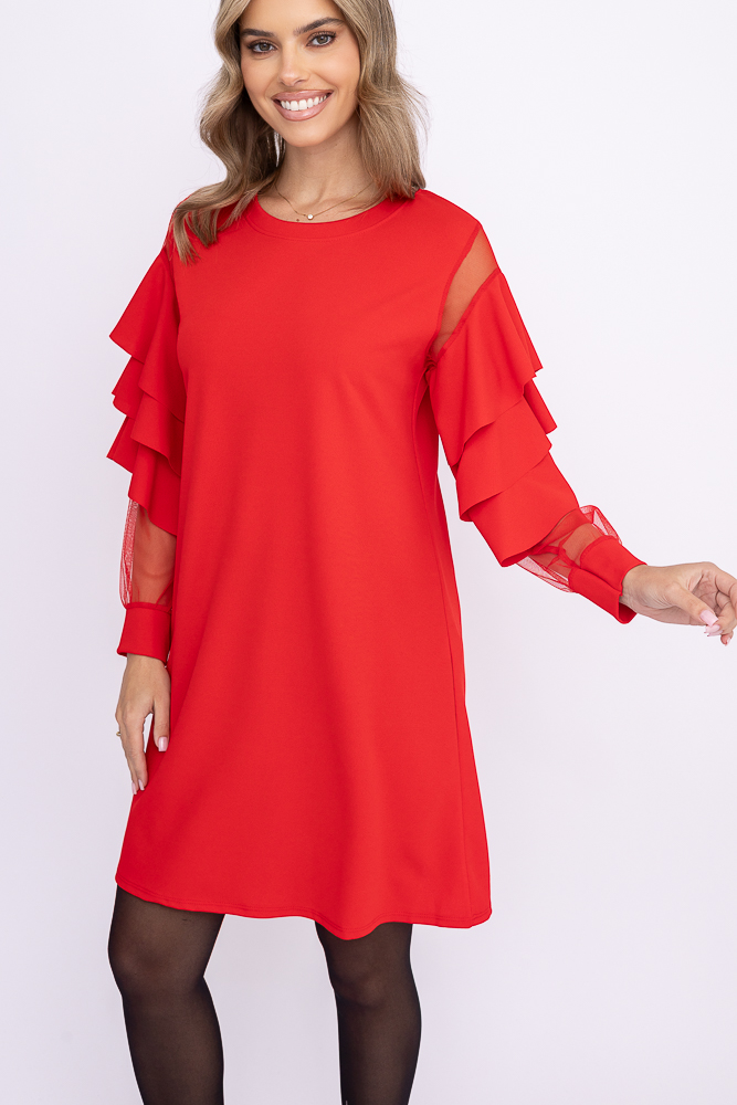 Czerwona Sukienka z falbanami