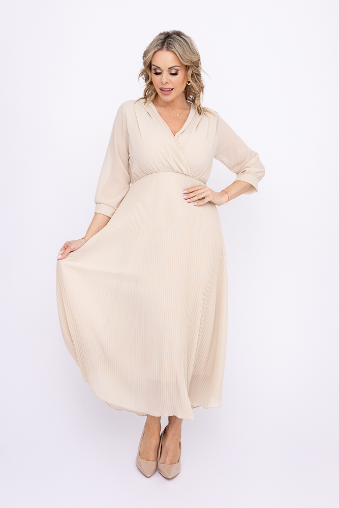 Jasnobeżowa Sukienka plisowana KEMELI