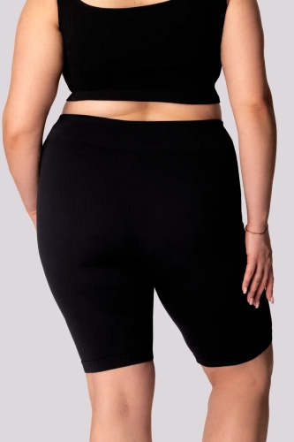 Černé pruhované motorkářské šortky