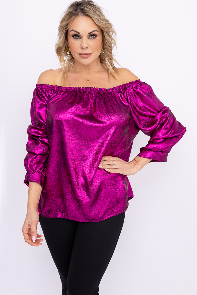 Fuksjowa błyszcząca Bluzka z marszczonymi rękawami PERINO