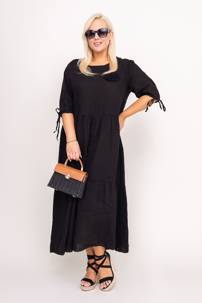 Czarna Sukienka lniana TRESIA