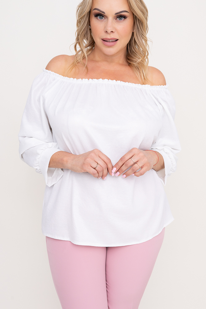 Biała błyszcząca Bluzka z marszczonymi rękawami