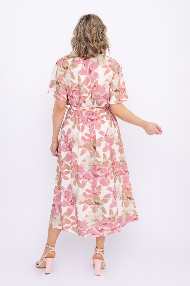 Das rote SENTEVI-Kleid ist der Inbegriff von femininem Stil und Komfort in einem. Aus leichter, atmungsaktiver Viskose gefertigt, bietet es den ganzen Tag über angenehmen Tragekomfort - perfekt für wärmere Tage. Der Rundhalsausschnitt betont dezent die Oberweite, während der Schnitt mit Gummizug und Taillenband die Silhouette schön formt und dem Look Leichtigkeit und Eleganz verleiht. Mit seinen kurzen Ärmeln und der Midi-Länge eignet sich das Kleid sowohl für legere als auch für formellere Anlässe wie Meetings, Familienfeiern oder den Gang zur Arbeit. Das stilvolle rot-bunte Muster ist ein Blickfang und verleiht Charakter, während die italienische Herkunft des Modells eine Garantie für Qualität und Trendbewusstsein ist. Das Kleid ist ungefüttert, was es noch leichter und luftiger macht, ideal für Frühling und Sommer. Es ist ein Vorschlag für Frauen, die eine klassische Form mit einem modischen, auffälligen Akzent kombinieren möchten.