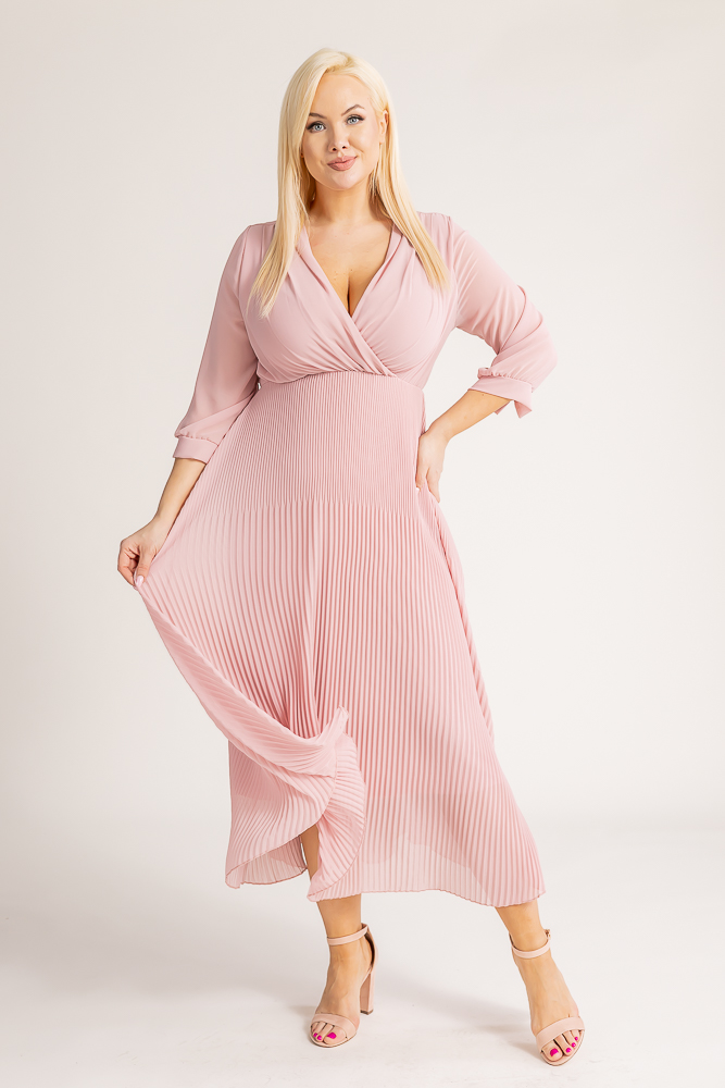 Sukienka KEMELI to zwiewna, romantyczna propozycja na wiele okazji. Wykonana z lekkiego, plisowanego materiału pięknie układa się na sylwetce. Kopertowy dekolt pozwoli wyeksponować biust, a dzięki rękawkom o długości 3/4 sukienka sprawdzi się na wiosenne oraz letnie wyjścia. Przyjemna podszewka i odcinany fason zapewniają wygodę jej noszenia. Dzięki plisowaniu i długości 7/8 sukienka optycznie wyszczupla sukienkę. Znajdziesz ją w wielu modnych kolorach i wzorach, od klasycznej czerwieni po piękne, kwieciste wzory.