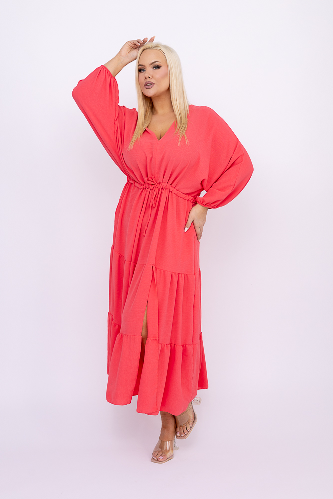 Koralowa Sukienka z rozcięciem TERUMI