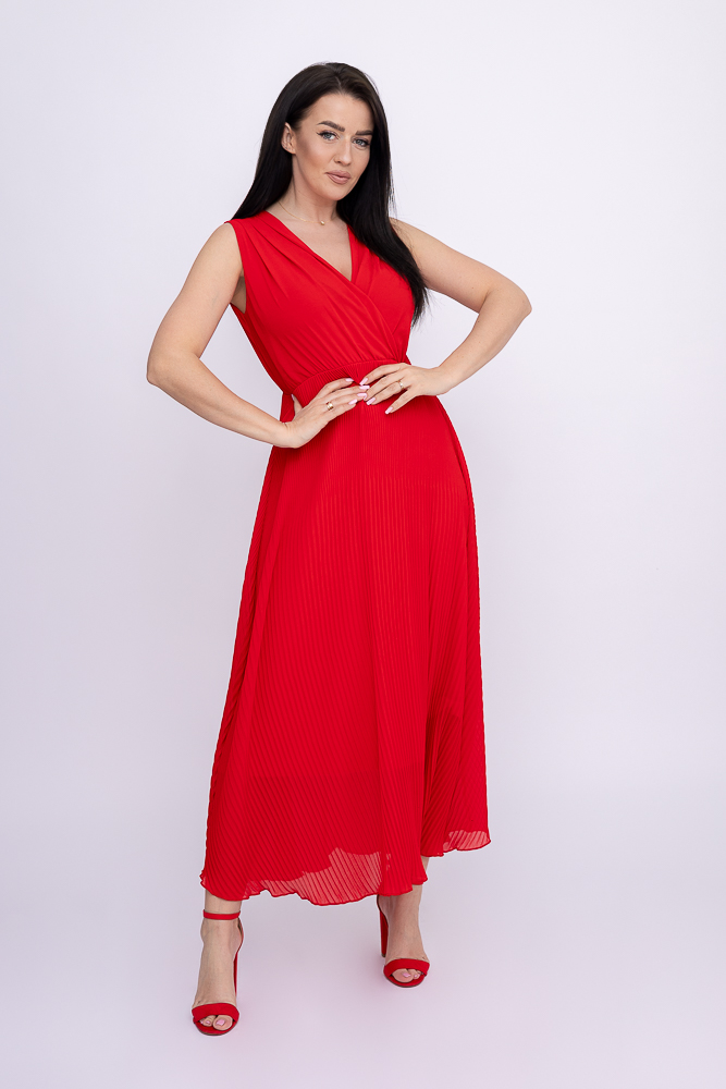 Czerwona plisowana Sukienka szyfonowa GUSTEN