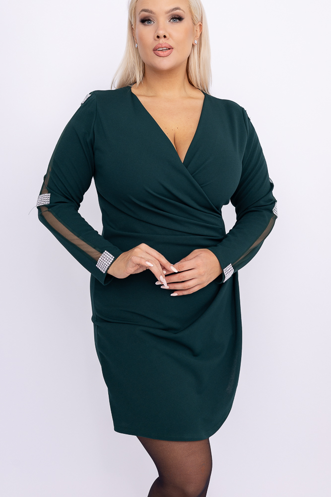 Butelkowozielona Sukienka z prześwitującymi rękawami KENVIRIO